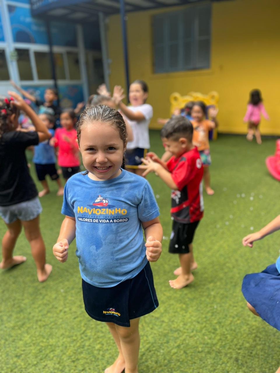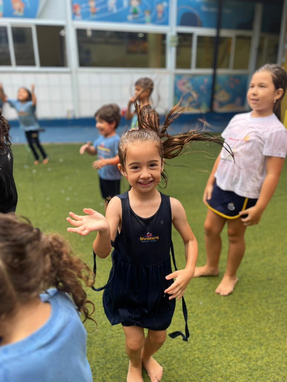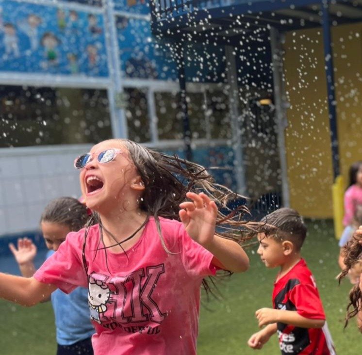 É afirmar que aprender também acontece no chão molhado, no vento leve, no cabelo encharcado e no sorriso que transborda.
