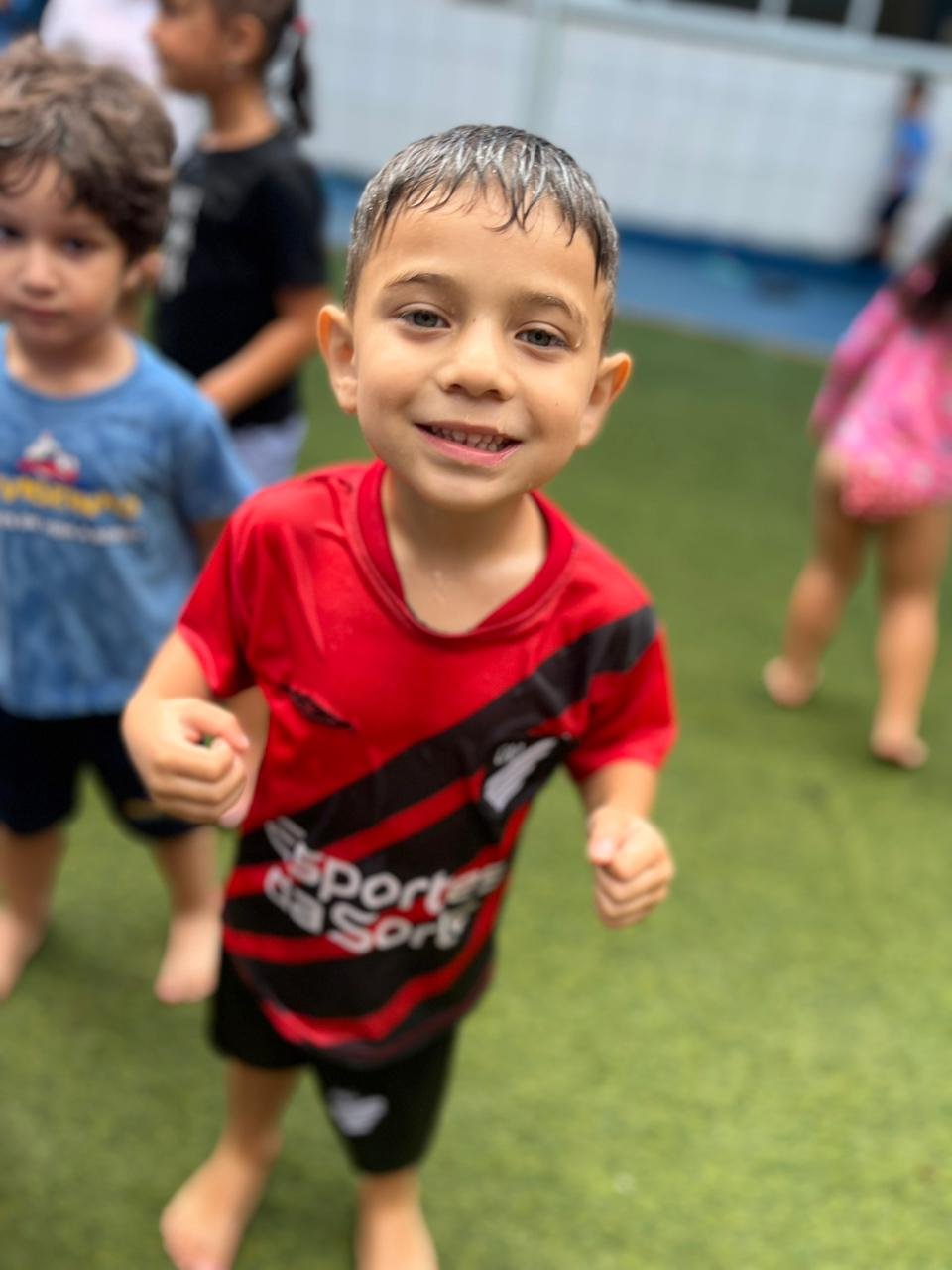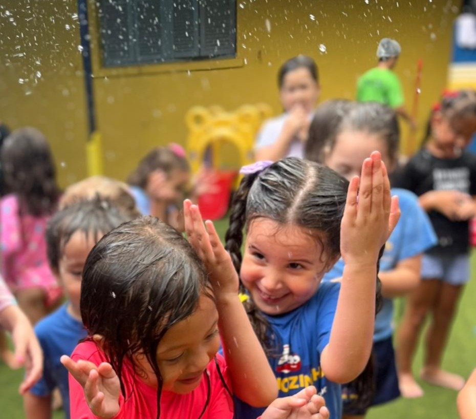 Banho de chuva na escola! 🌧️🌧️